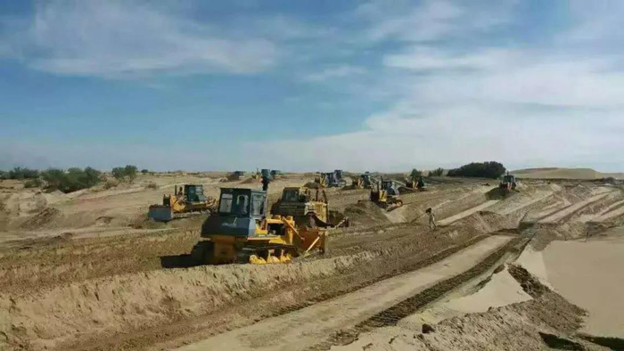 🌞      项目施工方考虑到沙漠恶劣的施工环境,经过多方比较,最终选择山推推土机、装载机、平地机一体化产品机群作为项目施工的“主力军”,承担治沙平整土地、土方施工作业。山推也不辱使命,凭借出众的施工效率、稳定的产品性能、及时的售后服务保障,确保项目进度顺利进行。