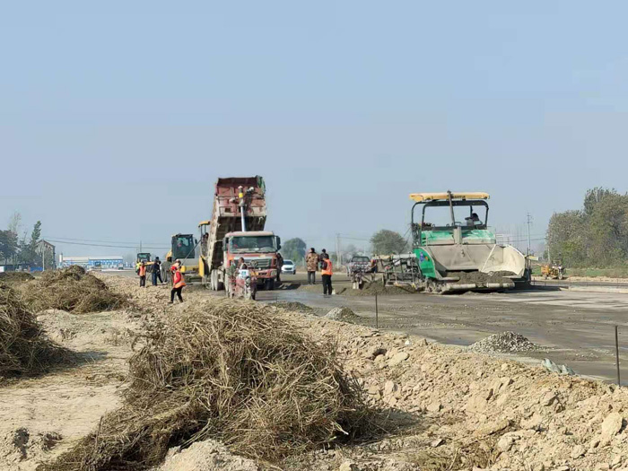 山推路面设备助力潍坊某园区道路施工